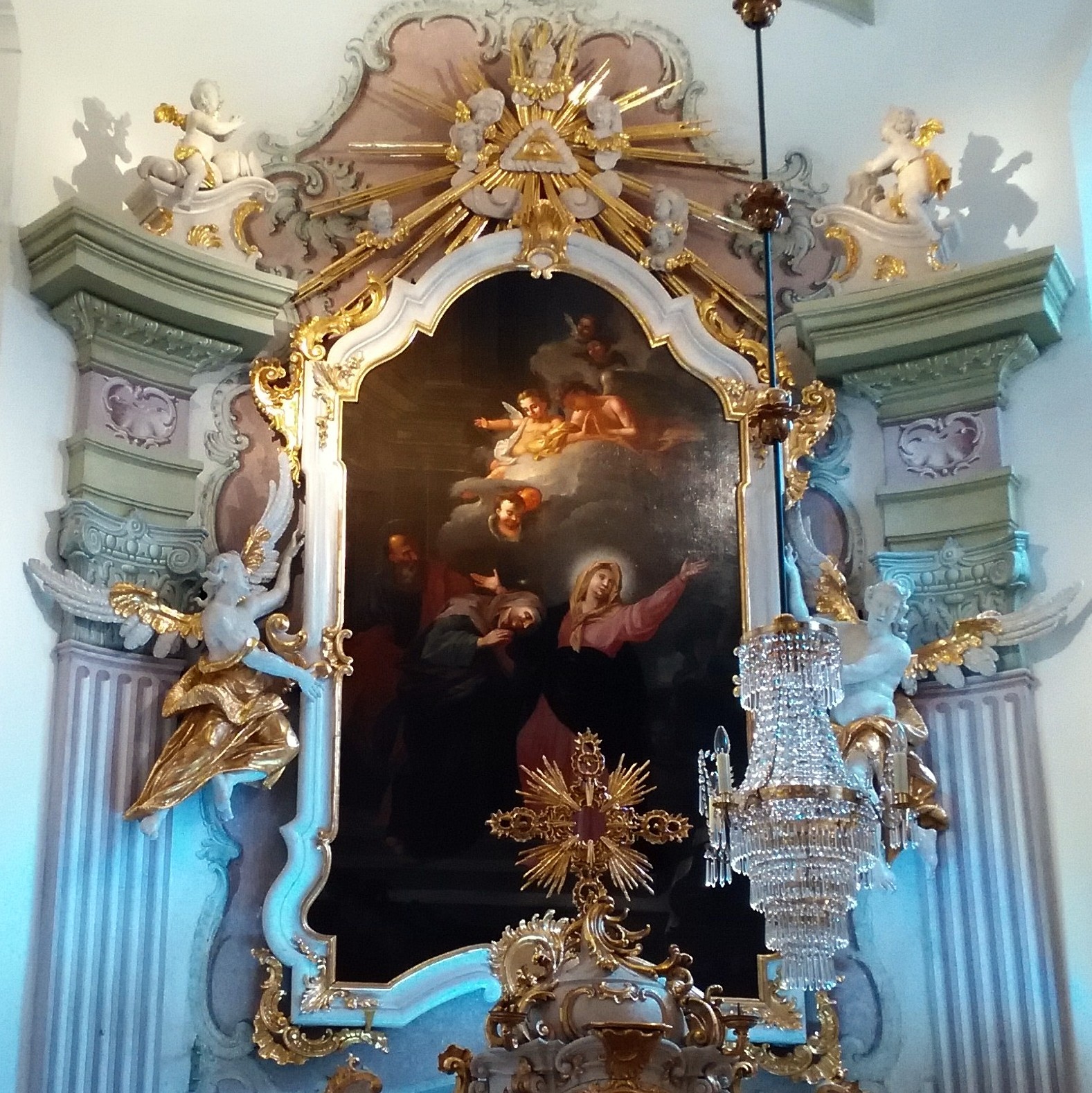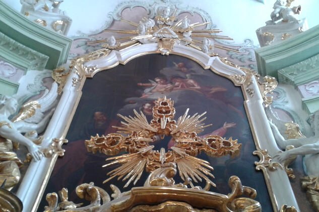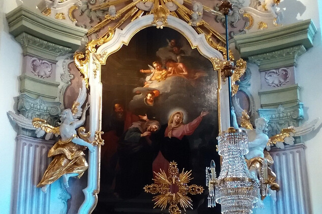 V prostoru zámecké kaple se nachází jeho vyobrazení na velkém barokním plátně od významného malíře Ignáce Raaba (1715 -1787). Svatý Václav, je zde vyobrazen s Paladiem země české. Tomu se tradičně připisuje zvláštní ochranná moc nad Českými zeměmi. Jedná se o kovový reliéf Madony s dítětem (19x13,5 cm) uchovávaný dnes ve staroboleslavském poutním chrámu Nanebevzetí Panny Marie. Svatý Václav ho, podle legendy, dostal od své babičky svaté Ludmily.